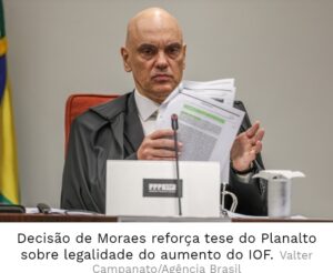 O ministro Alexandre de Moraes, do Supremo Tribunal Federal (STF), manteve a validade do decreto presidencial que elevou as alíquotas do Imposto sobre Operações Financeiras (IOF), rejeitando a tentativa do Congresso de barrar o aumento.