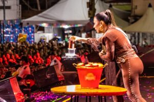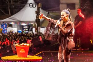 “Essa é pra brindar com vocês, Campina Grande! Viva o São João da Brahmosidade!”, declarou a cantora, celebrando o momento com sorrisos e emoção.