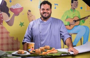 “Minha cuca repaginada homenageia um bairro tradicional de Campina Grande. A receita trouxe a cuca como um tipo de bolo, que além da farinha da massa, leva uma farofa com Farinha Láctea Nestlé. A fruta escolhida foi a banana, para trazer à tona a memória daquela comida confortável, rememorando sabores da infância. Banana com Farinha Láctea, quem nunca provou, né?”, explicou Júlio César Vilar.