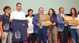 Outro destaque foi a apresentação do kit escolar, que será entregue a todos os estudantes, assim como o novo fardamento escolar — a novidade deste ano é uma camisa exclusiva para os concluintes do Ensino Médio, importante etapa da trajetória escolar.