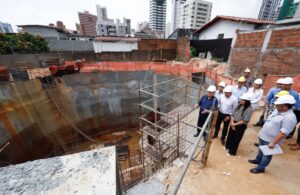 O governador João Azevêdo inspecionou, nesta quarta-feira (24), ao lado de missão do Banco Mundial, as obras de implantação da estação elevatória, no bairro de Manaíra, que contemplam, ainda, um emissário de recalque, que elevará os efluentes (resíduo líquido gerado por atividades humanas) de esgotos coletados nos bairros de Cabo Branco, Tambaú, Manaíra e Altiplano, em João Pessoa, até a Estação de Tratamento de Esgotos do Baixo Paraíba (Baixo Roger), onde será tratado.