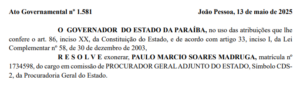 A edição do Diário Oficial do Estado (DOE) desta quarta-feira (14) trouxe mudanças na equipe do governador João Azevêdo (PSB).